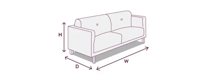 To ensure your chosen sofa is going to work with your space, you’re going to need the dimensions. Make sure you jot down all of the essentials: the width (W), the height (H), and the depth (D).