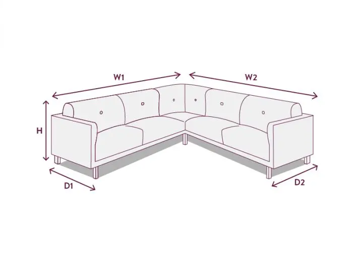 Depending on what kind of sofa you’re buying, there may be some other measurements you need to take into account. For example, corner sofas have two lengths (W1 and W2) that you’ll need to measure, and you’ll have to consider the depth of each section, too (D1 and D2).