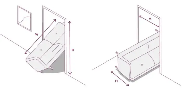 However, if this isn’t going to work, Plan B will be to carry your sofa through the front door upright. To ensure this will be possible, you need to measure the height (B) of your door frame and check that it’s big enough to accommodate the width of your sofa (W). You’ll also want to have some wiggle room, so your furniture can be manoeuvred through as easily as possible.
